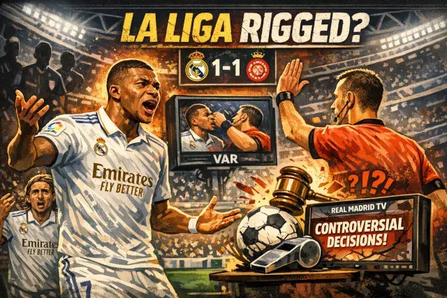 Real Madrid's official broadcasting channel has publicly accused La Liga of operating a compromised officiating system, using the word "rigged" following Friday's 1-1 draw with Girona at the Santiago Bernabéu in the 31st round of the Spanish first division. The accusation, made through an institutional media platform rather than an individual spokesperson, marks a significant escalation in the club's long-running friction with the league's refereeing apparatus. At the center of the dispute: a denied penalty call involving Kylian Mbappé that the channel described as unambiguous.